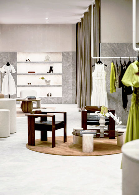 The Aje Miranda boutique showcases a striking 4-metre high natural marble façade, detailed with floating glass panels that demanded intricate craftsmanship and precision. Inside, the design continues with tiled walls blending porcelain and marble, creating a refined yet modern backdrop for the brand’s collections. Custom metalwork and joinery elements elevate the space, while carefully executed detailing ensures seamless transitions between materials. The result is a luxurious retail environment that reflects Aje’s signature aesthetic – bold, contemporary, and timeless.
